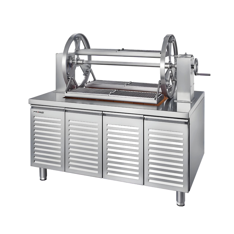 The Argentine lift grill features a vertically designed, adjustable-height cooking grate, supporting both direct and indirect cooking. Its mechanical lift system and manual temperature control allow precise heat management by adjusting the distance between the food and the charcoal. Crafted from 304 stainless steel,it can be heated with charcoal or fruitwood,with a cooking height adjustable from 80 to 470 mm.